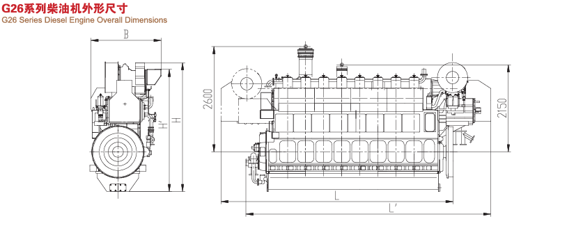 G26系列柴油机是我公司自主研发的新一代产品,是在我公司长期积累的大量设计、计算、试验数据和丰富的制造经验基础上,吸取国际先进技术开发成功的。可燃用380厘海/50龙的重油,曲轴采用全平衡结构整机振动小,柴油机自由端可以输出100%的额定功率。